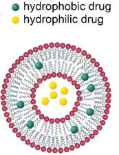 Los liposomas son los precursores de las nanopartículas lipídicas. Son pequeñas vesículas cerradas que se forman espontáneamente a partir de una bicapa de fosfolípidos. Tienen una estructura similar a las membranas celulares y pueden simular las propiedades de las membranas celulares. Los liposomas fueron descubiertos por Bangham et al. en la década de 1960 y se utilizaron inicialmente como modelo simple para estudiar la estructura y función de las membranas celulares. Con el avance de la tecnología y una investigación más profunda, los liposomas se han convertido gradualmente en un posible vehículo de administración de fármacos. Debido a su estructura anfipática, los liposomas pueden transportar diversos fármacos. Los fármacos hidrófilos pueden encerrarse en la región interior acuosa de los liposomas, mientras que los fármacos hidrófobos pueden encapsularse en la región de la cadena de hidrocarburos de la bicapa lipídica, como se muestra a continuación.