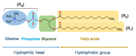 Nota: R1 y R2 pueden ser ácidos grasos saturados o ácidos grasos insaturados, como ácido láurico, ácido palmítico, ácido oleico, ácido erúcico, etc. R3 puede ser fosfatidilcolina neutra (PC), fosfatidiletanolamina (PE) o fosfatidilserina cargada (PS). ), fosfatidilinositol (PI) o ácido fosfatídico a diferentes valores de pH. (PA), fosfatidilglicerol (PG)