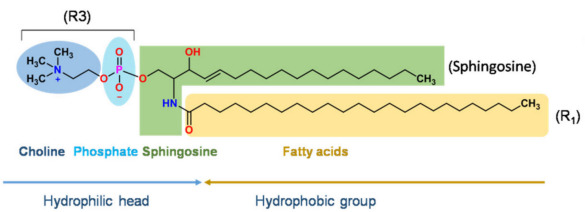 Los liposomas utilizados para la administración de fármacos se componen principalmente de varios tipos de fosfolípidos y colesterol, de los cuales los fosfolípidos (glicerofosfolípidos y esfingomielina) son su esqueleto básico. Los glicerofosfolípidos son lípidos con glicerol como columna vertebral y la esfingomielina es un lípido con esfingosina como columna vertebral. La siguiente figura muestra las estructuras básicas de los glicerofosfolípidos y la esfingomielina.
